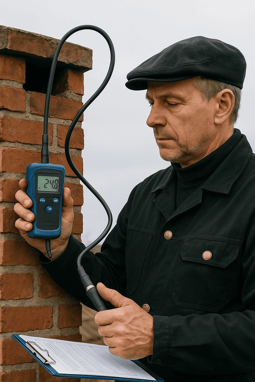 Dobór miejsca pomiaru – zwykle wykonuje się kilka odczytów: przy wlocie spalin i w kominie wentylacyjnym.